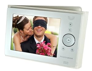 8-inch 800x600 high-resolution digital LCD with LED backlighting - Leather-like case in Pearl White protects the Photo Book and makes an attractive presentation